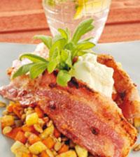 Isterband med senapsstuvade bönor