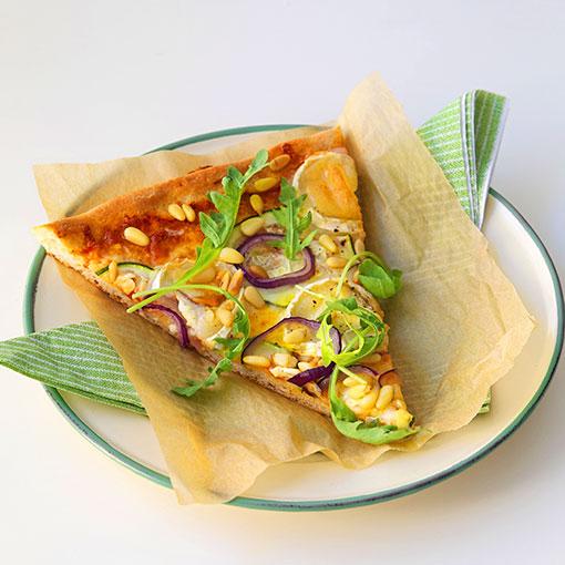 Vegopizza med squash och chèvre