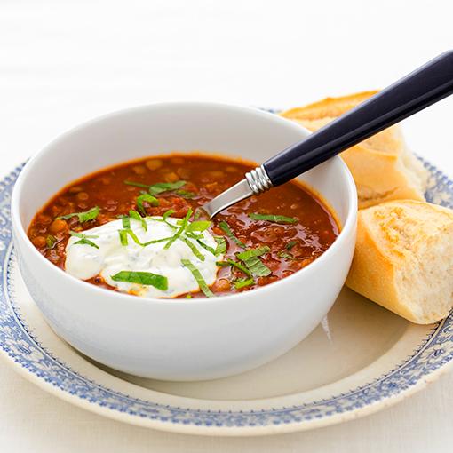 Kryddig linsgryta med myntayoghurt
