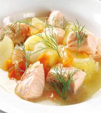 Laxgryta med senap och grönsaker