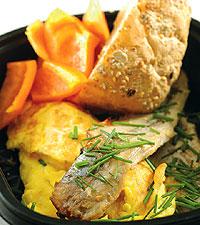 Gräslöksomelett med böckling och grovbröd