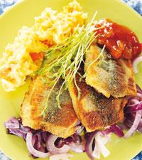 Strömmingsflundra med morotsmos och chutney