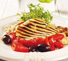 Grillad halloumi och paprikasallad med kornris