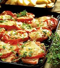 Ostgratinerad kassler och tomat