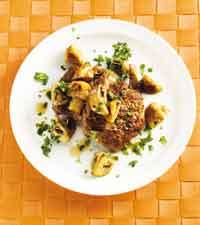 Grillad kycklinglever med mandelpotatismos