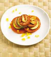 Stekt falukorv med zucchini och tomat