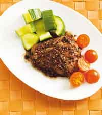 Pepparbiff med rödvinssky och gurka