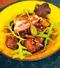 Kycklinglever med bacon och svamp