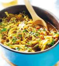 Köttfärsgryta med curry, kål och äpple