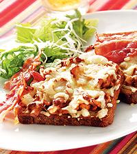 Varma svampmackor med bacon och sallad