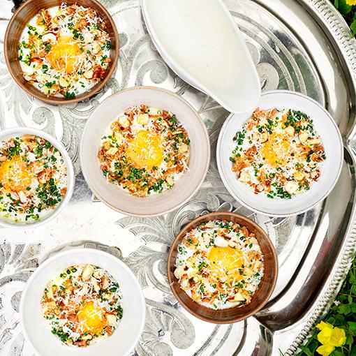 Oeufs en Cocotte med soppa
