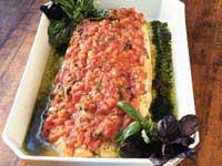 Pestobakad lax med tomatsalsa