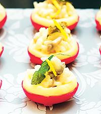 Ägghalvor med löjrom och rödlök