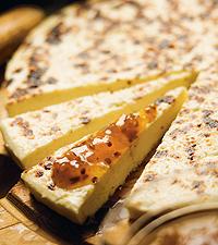 Ostkaka serverad med hjortronsylt
