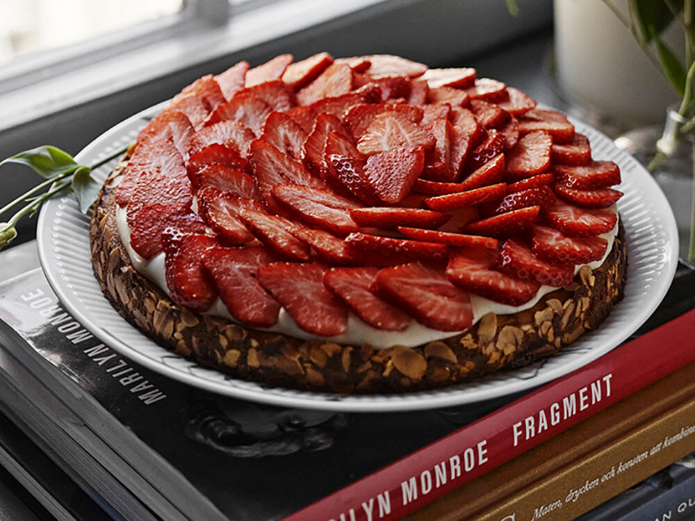 Roy Fares mandeltårta med jordgubbar