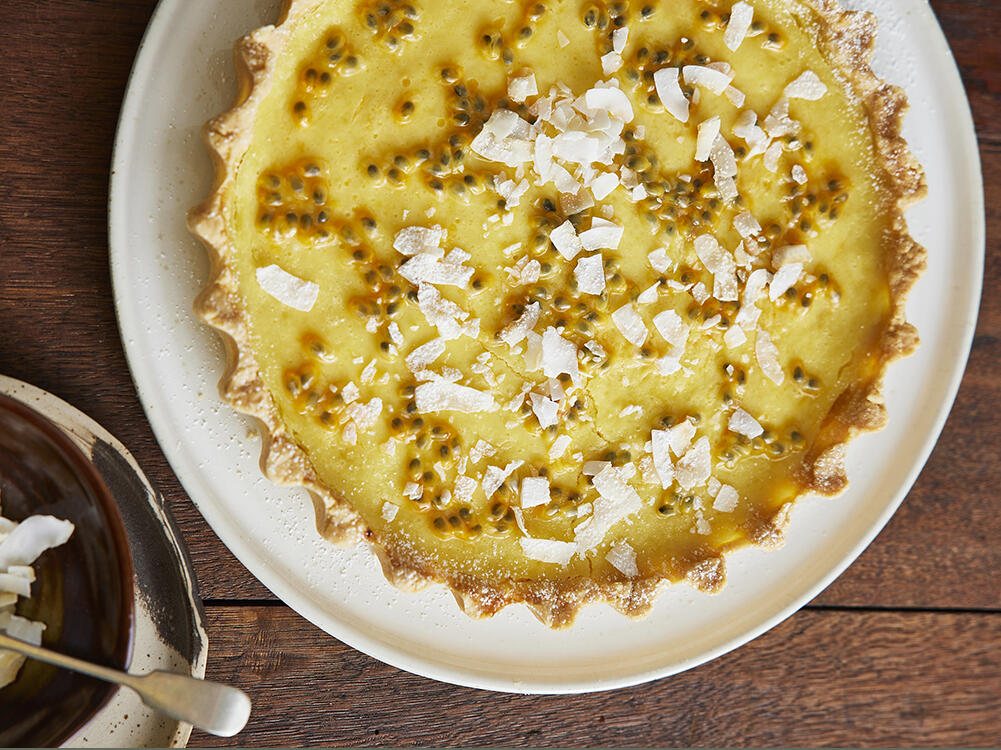 Söt; syrlig & frisk – Passionsfruktspaj med kokosflakes