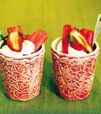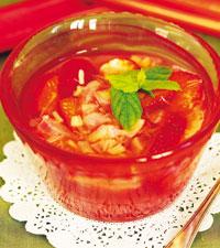 Rabarber- och jordgubbssoppa med vaniljstång och mynta