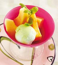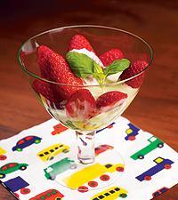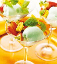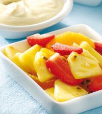 Fruktkompott med grillad ananas och rårörda jordgubbar