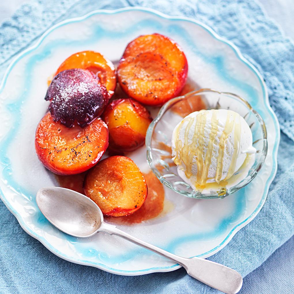 Honungsplommon med vaniljglass