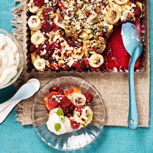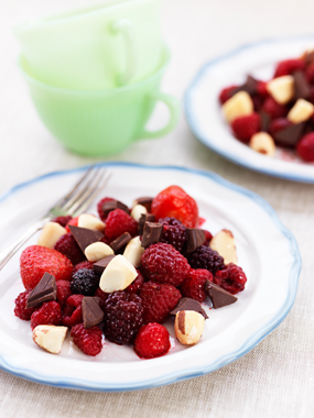 Bärdessert med choklad och pecan