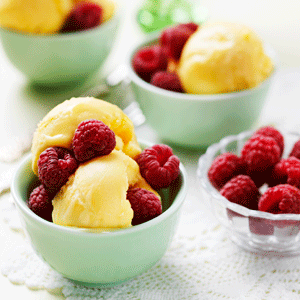 Mangosorbet med hallon