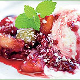 Wokad frukt med ingefära och kokos