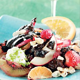 Exotisk fruktsallad med mandelgrädde