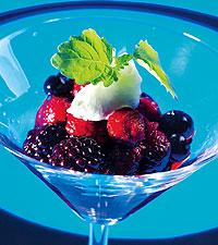 Konjaksmarinerade färska bär med vaniljgrädde