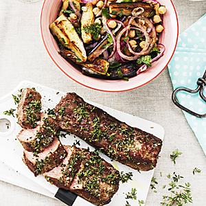 Auberginesallad med stekt lammfilé