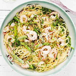 Pasta med räkor och sparris
