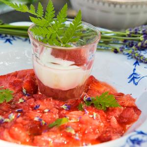 Sommardessert med körvel och lavendel
