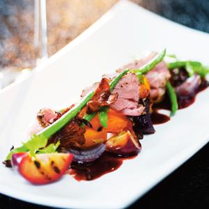 Portvinsmarinerad lammrostbiff med vitlöksrostad pumpa