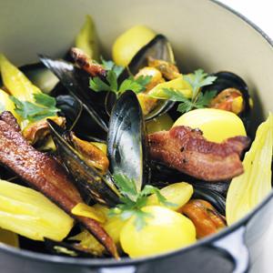 Rökt fläsk med bröd samt hoisin- och honungssås