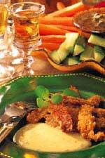 Grön ärtsoppa med kycklingspett