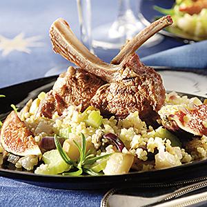 Lammracks på fruktig bulgursallad