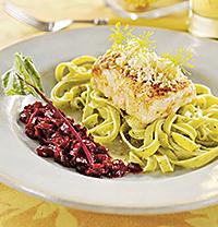 Hjortschnitzel med gorgonzolasmör och kokta rödbetor