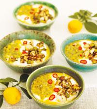 Indisk lammcurry med kryddig yoghurt och bönor eller ris