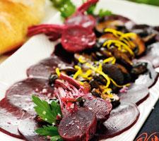 Rödbetscarpaccio med raspat citronskal