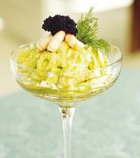 Avokadosoppa med lax och räkor