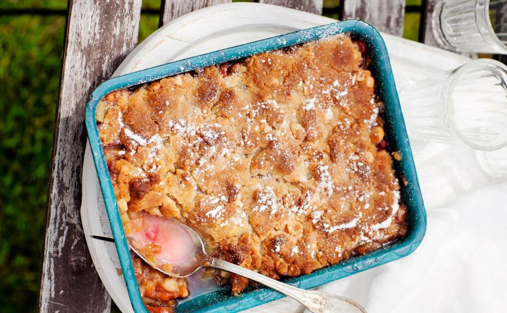 Rabarberpaj med nötigt täcke