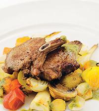Lammfilé med jordärtskockspure med balsamicosås