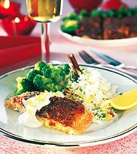 Fikonglaserad lax med kryddigt ris