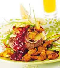 Aprikostäckt ankbröst med apelsinsås och tagliatelle