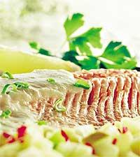 Ingefärskryddad laxfilé med snabbinlagd gurka