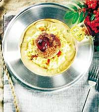 Äppel- och jordärtskockssoppa med Vänerlax