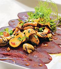 Lättgravad rådjursfilé toppad med persiljestekt svamp