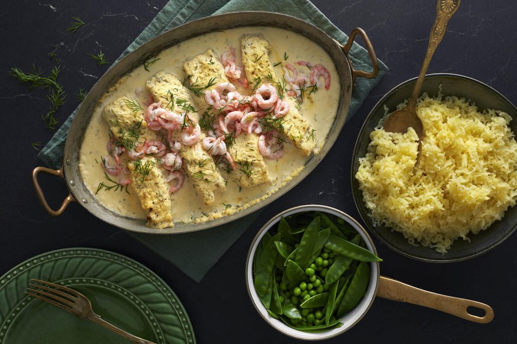 Torsk i kaviarsås med räkor