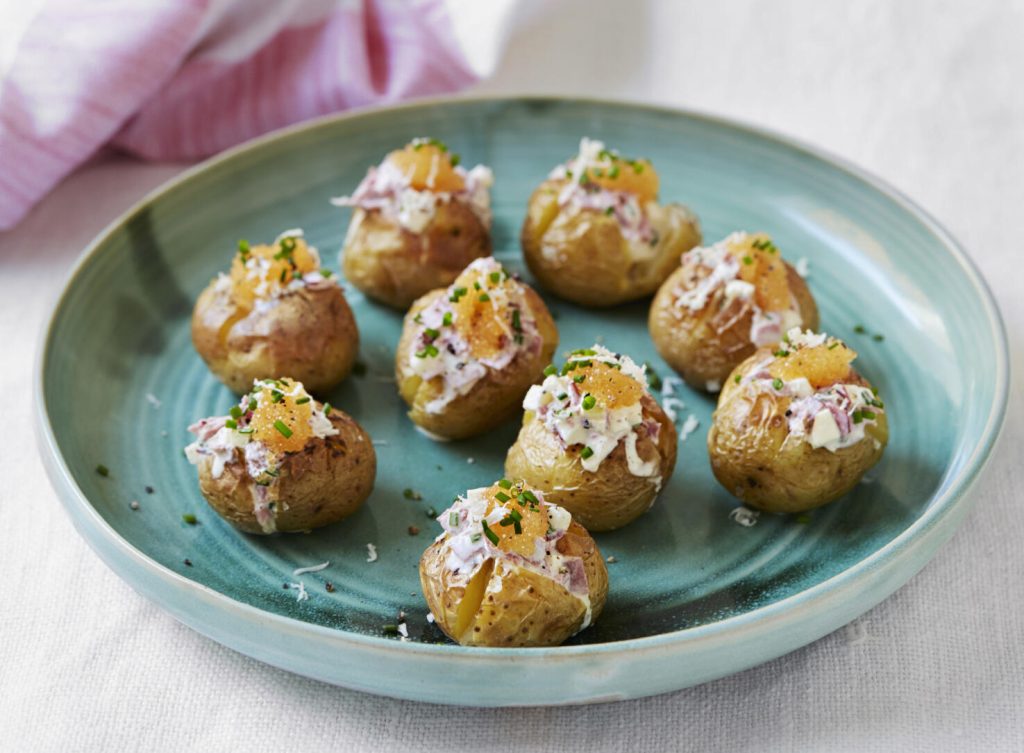 Bakad färskpotatis med rensteksröra