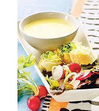 Sparrissoppa med purjo, rädisor, persilja och ost