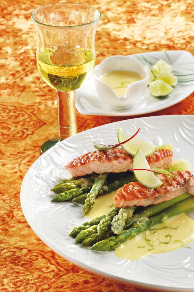 Sparris med limehollandaise och lax